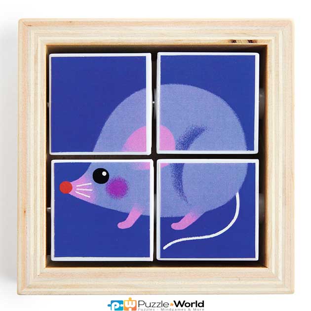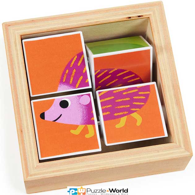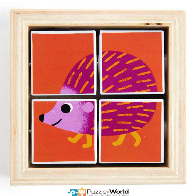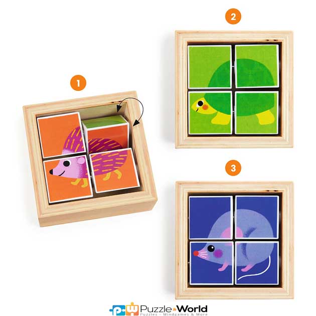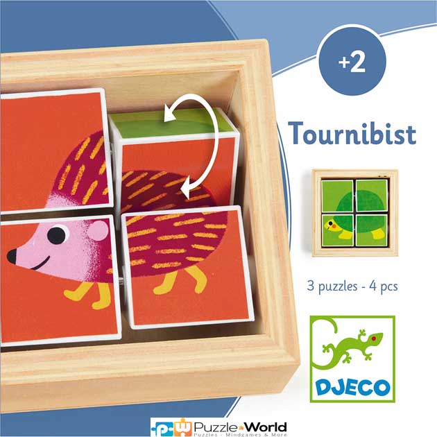 Ξύλινο παζλ σε πλαίσιο με 4 τρισδιάστατα κομμάτια που περιστρέφονται, της εταιρίας Djeco.