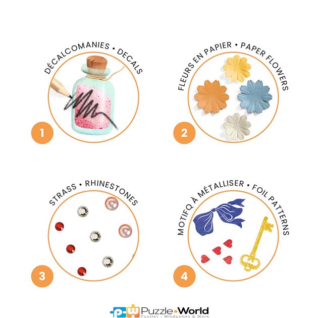 Ένα ολοκληρωμένο σετ 4 σε 1 χειροτεχνιών της εταιρίας Djeco, που καλλιεργεί την δημιουργικότητα των παιδιών και αναπτύσσει δεξιότητες προσοχής, συγκέντρωσης και λεπτής κίνησης.