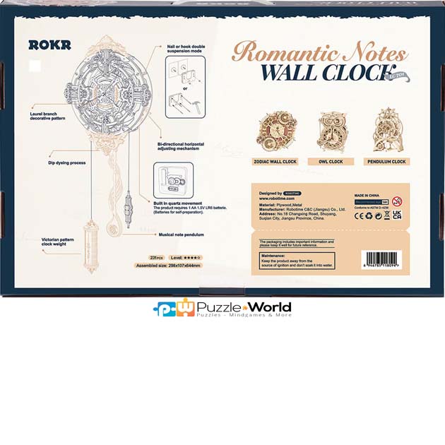 Νιώστε τον απόλυτο ρομαντισμό με αυτό το εξαιρετικό ξύλινο μηχανικό μοντέλο ROKR Romantic Note Wall Clock.