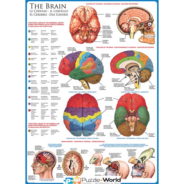 Puzzle 1000 τεμαχίων υψηλής ποιότητας, εκπαιδευτικού περιεχομένου και θέμα την ανατομία του ανθρώπινου εγκεφάλου.
